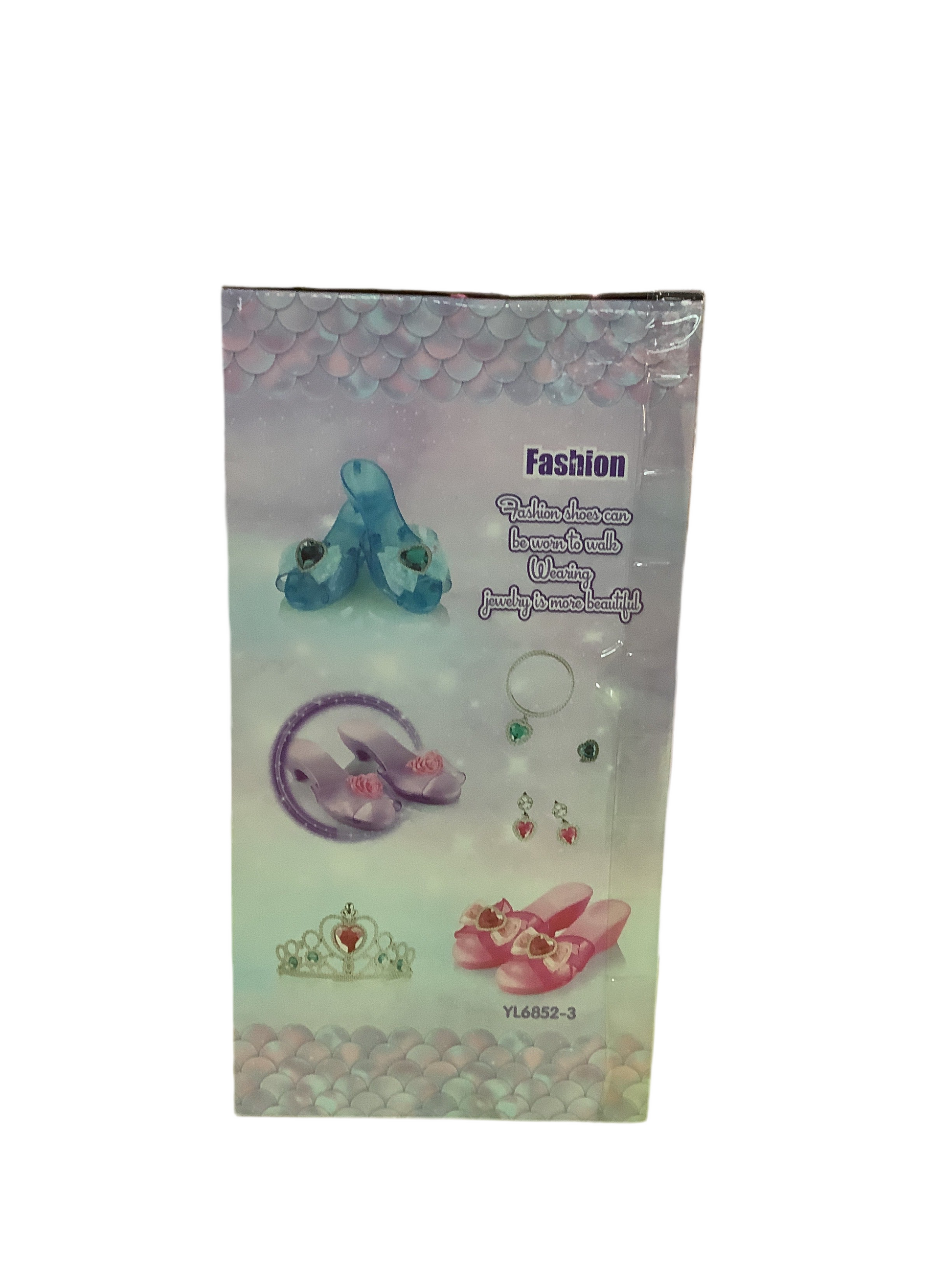 This princess set includes a sparkling tiara and three pairs of shoes. Perfect for adding a touch of elegance to dress-up play, allowing children to fully embody the role of princess. Made with durable materials for long-lasting use.