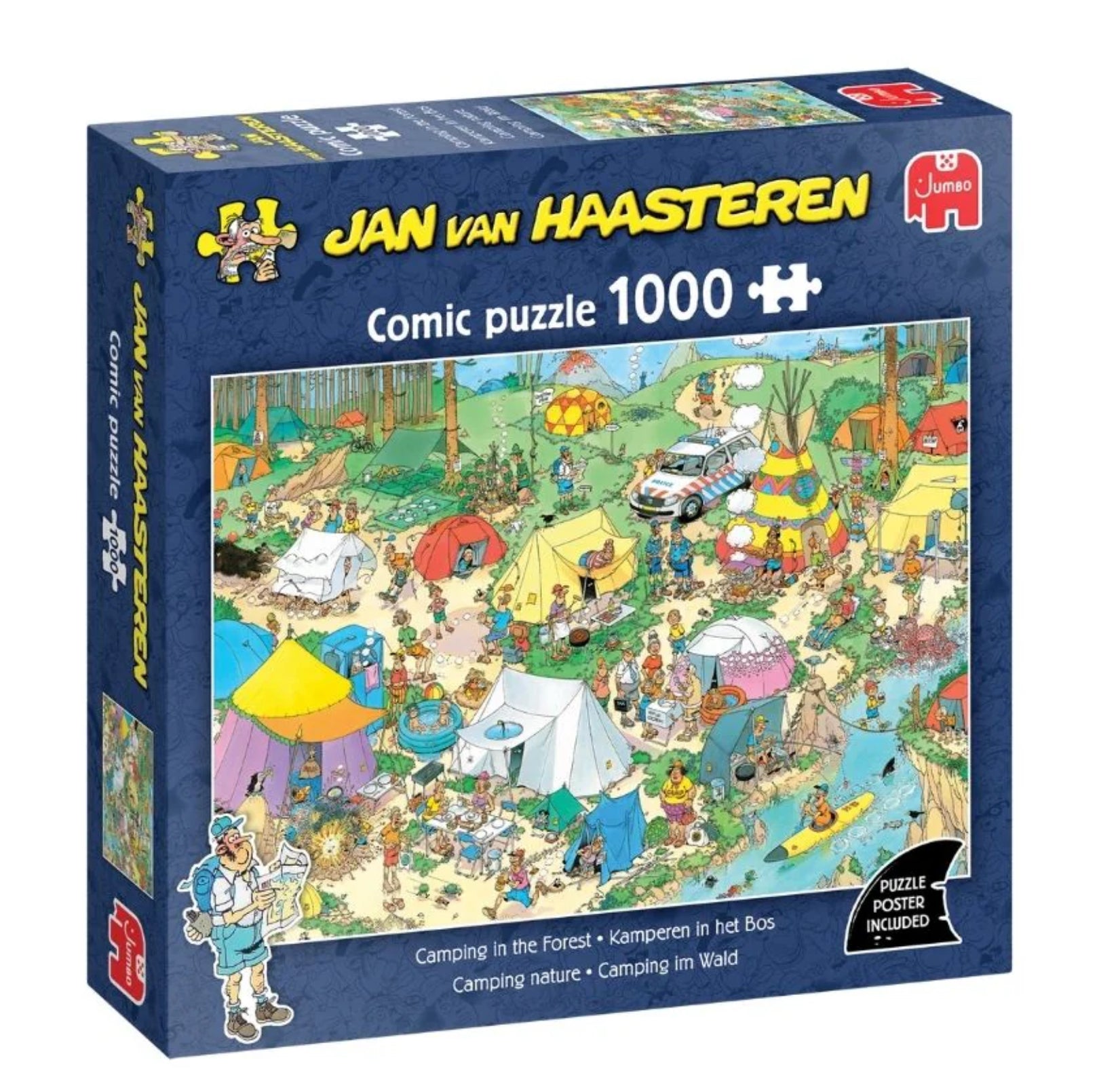 Camping in the Forest is the title of this Jan van Haasteren 1000 piece jigsaw puzzle and, as with all of his illustrations, you are sure to find this puzzle extremely enjoyable while laughing at all of the individual illustrations. The finished puzzle image captures a big camping site, which is perfect for families to go away for the weekend.