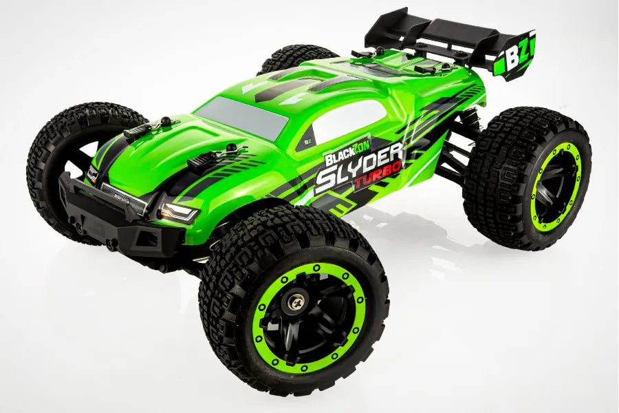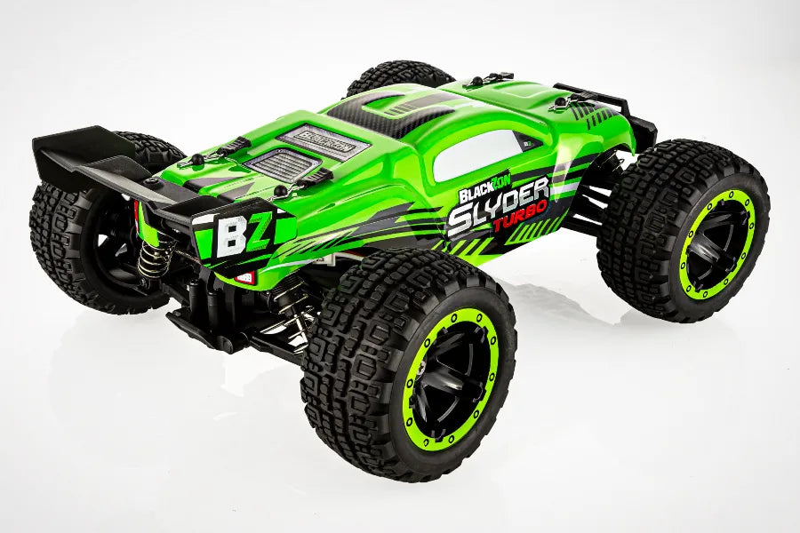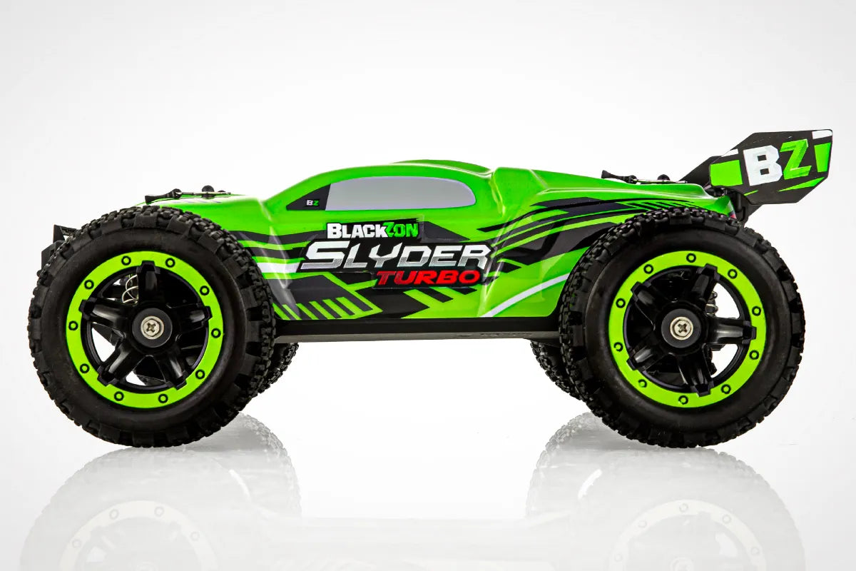Unleash the fun of brushless power in a compact package with the BlackZon 1/16 Slyder Turbo! This ready-to-run RC is perfect for backyard bashing, dirt tracks, and even indoor courses with its compact size and powerful performance.