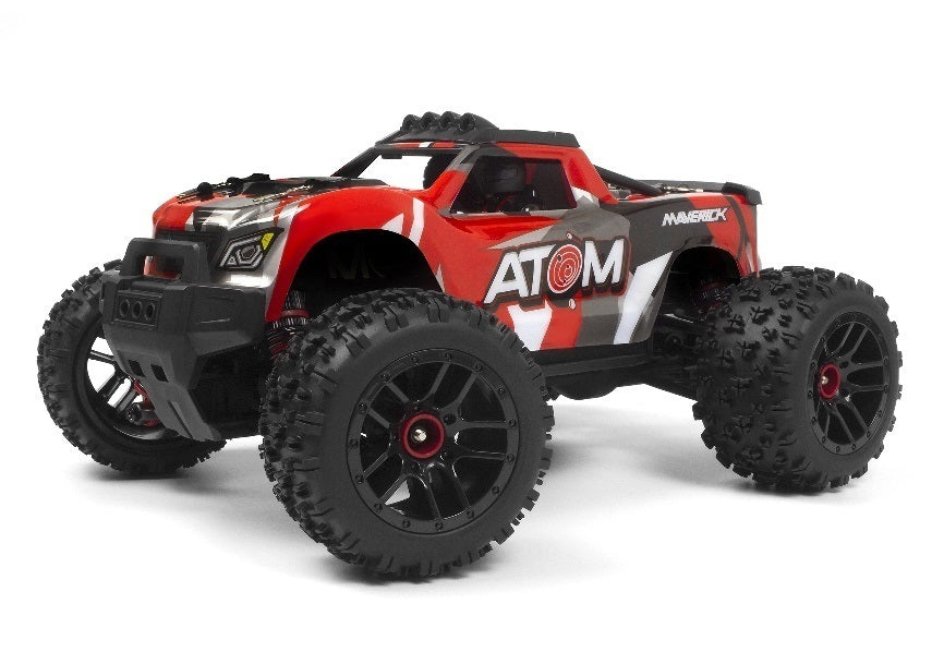 Maverick RC's reputation for affordable fun continues with the hugely impressive ATOM! This 1/18th scale monster truck gives you the thrilling excitement of much larger RC trucks in a package that fits in the palm of your hand! 4WD grip and large off-road tires mean you can turn anywhere you go into your own RC playground!