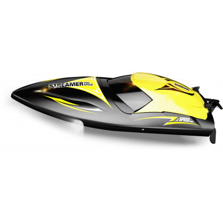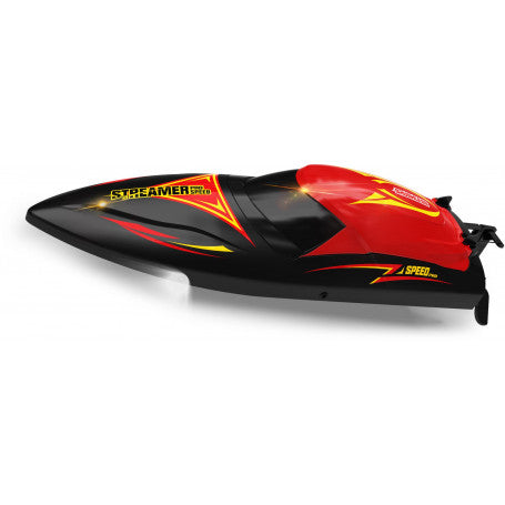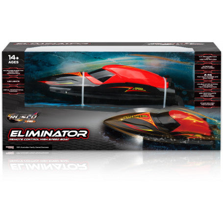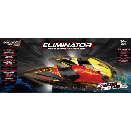 Rusco Racing Eliminator Boat. Superfast 40+ km/h speed and LED lights. Brushless motor for ultra high speed and 2.4G for multi racers and long range distance.