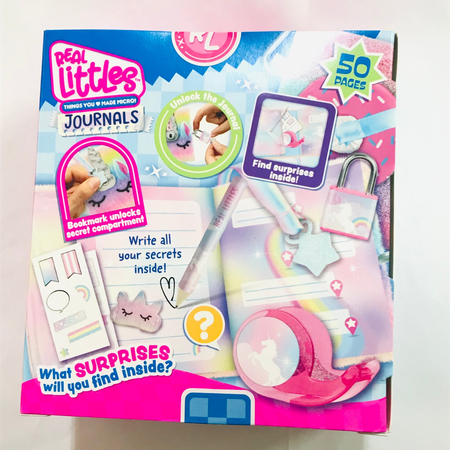 Real Littles Journals now have secret surprises! Each adorable designer Journal comes with a Lock and Key. When kids open up their Real Littles Journal, they will discover other micro surprises hiding inside! Wow! These surprises are so tiny and really work! There is plenty of room so kids can write their own special secrets with 50 pages inside! Bookmark unlocks secret compartment