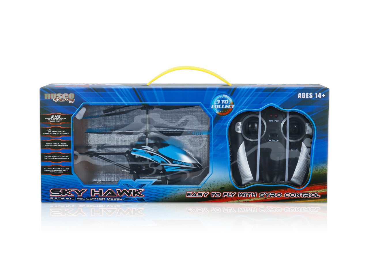 This Rusco Racing Radio Controlled Helicopter with LED Lights comes with 3 different styles to choose from (sold separately), plus LED lights for night flying. Easy to fly with its Gyro control and with 3 frequencies to allow 3 flyers together, collect all designs with your friends and have tons of fun racing these helicopters!