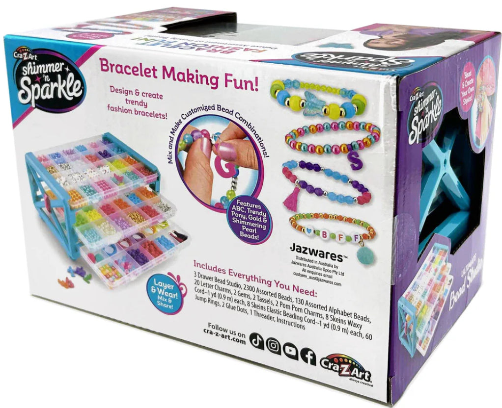 New from Shimmer n Sparkle, it's the Ultimate Bead Studio! A delux assortment of gorgeous and trendy coloured beads, you can have hours of bead-tastic bracelet fun. With different sizes and finishes of the beads, you can create your own style again and again.