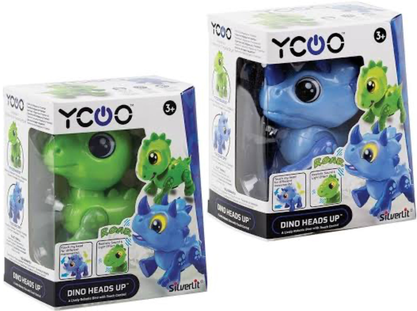 >Dino Heads Up is an interactive dinosaur that goes back and forth with just one touch! Push his head down, it'll roar and go forward! Pick it up, it will roar and go back!