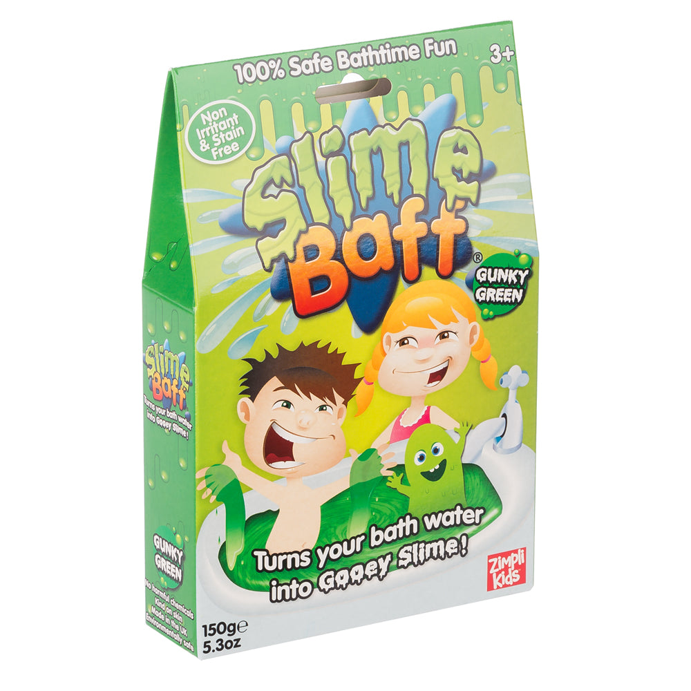 Slime Baff is a powder that turns bath water into gooey slime. Simply sprinkle the powder over the bath water and watch as the water magically turns into slime! When the fun is done, simply turn the taps back on to dilute the slime. It gives children a fun bath time, does not block drains and is kind on skin.
