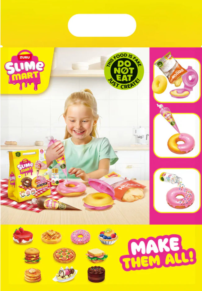 Get creative with the ZURU Slime Mart range! Each pack includes everything you need to make your own realistic slime food with 7+ surprise ingredients inside. Unpack, mix, and squish your way through a fun, sensory experience—no mess, just creativity!