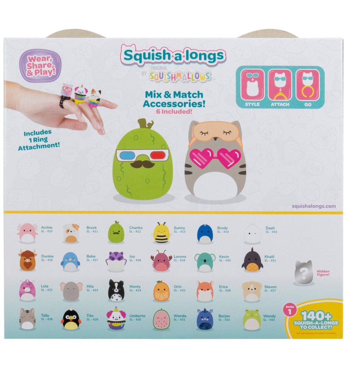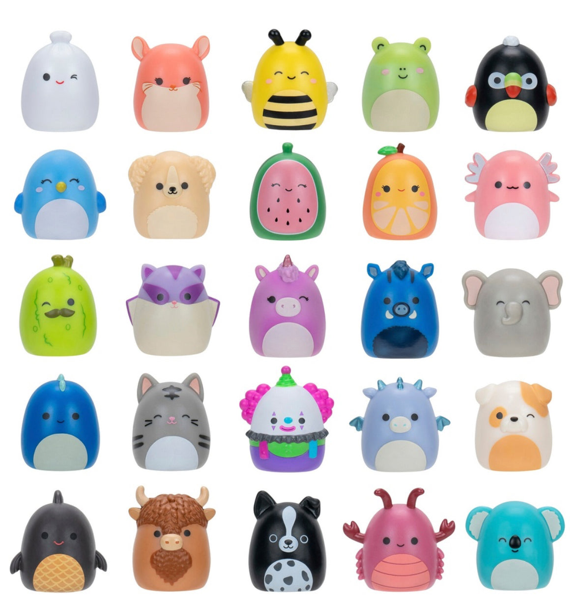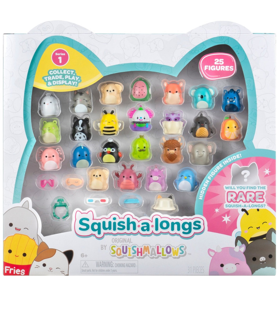 Introducing the Squish-A-Longs by Original Squishmallows 25-Pack, the newest sensation in the Squishmallows family! These adorable, portable collectibles bring squishy fun to a whole new level with their tiny 2.5cm size. Perfect for on-the-go squishing, each Mini-Squish is made of squeezable plastic, making them perfect to collect, trade, play, wear, and display.
