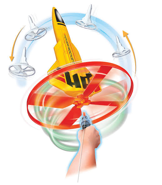 - Launch up to 40ft. Watch it spin, fly and hover!