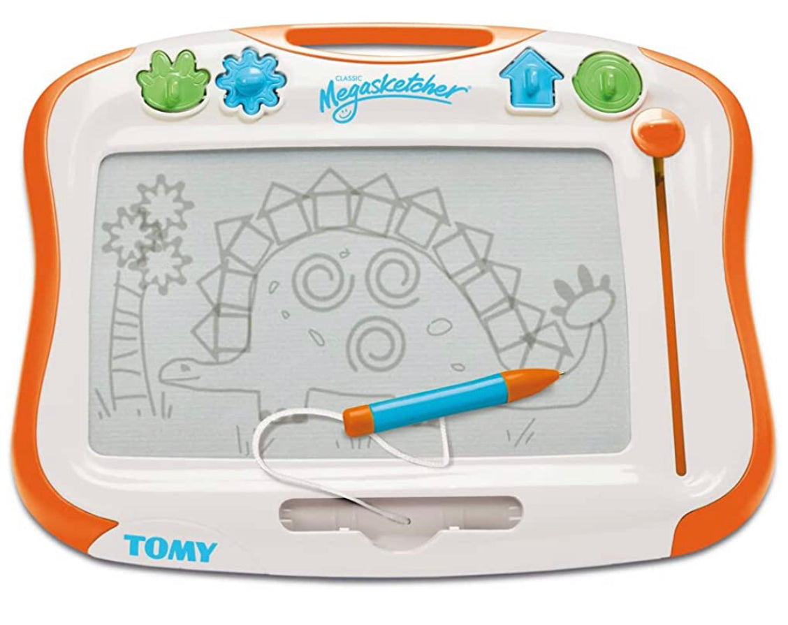 Children love to draw and the TOMY Megasketcher needs no pencils to sharpen and there's no mess. A great product for encouraging creative minds and perfect for travel. The premium screen of this much loved classic allows budding artists to draw clear, crisp pictures. The pictures magically disappear with one sweep of the eraser. The megasketcher pen draws thick and thin lines with four shape stampers included to inspire their artistic creativity.