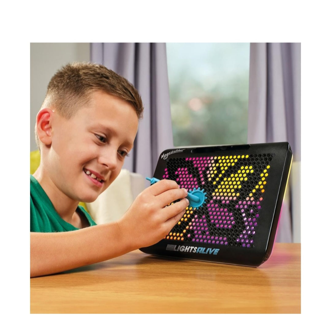 Meet the new and improved Megasketcher, the animated light up edition of the traditional magnetic drawing board. Featuring 632 individual light up dots, 12 animations and an array of colours, kids will love getting creative with drawing up whatever their imagination can conjure.