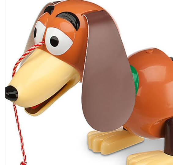 - Slinky Dog is a well-known hound that makes a well-known slinkity sound! He is a squirming, wiggling, adorable dog who follows along when pulled and has been loved by generations of kids. "Slinky" or "Slink" as his friends call him, pals around with a famous group of characters in the Disney "Toy Story" movies and is one of Andy's beloved toys that come to life behind closed doors. Slink is also Woody's best pal and he is always by his side, just like a real dog.