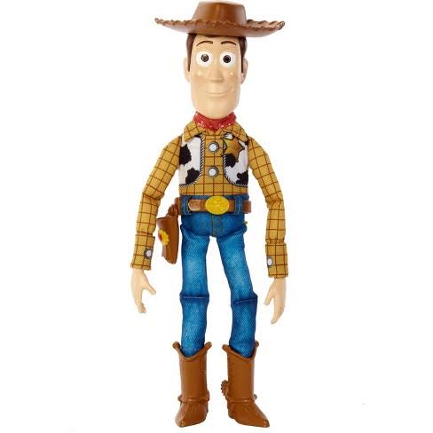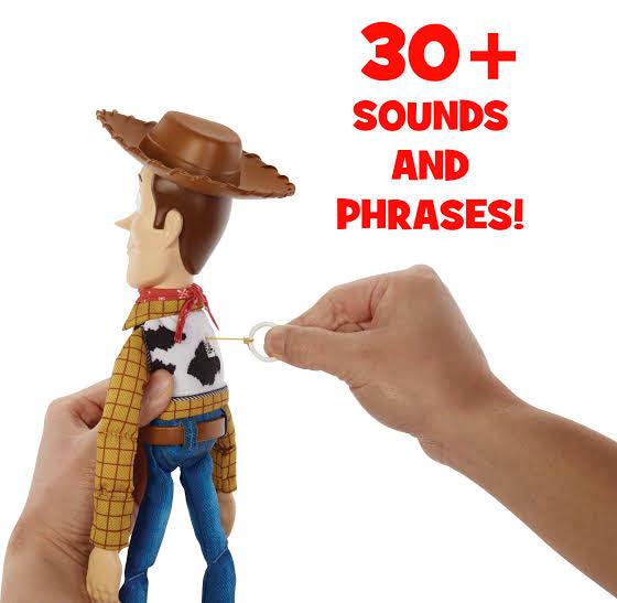 Yes sir, time to round us up an adventure! This Roundup Fun Woody 12 inch figure will bring big realistic thrills to fans of the friendly sheriff from Disney and Pixar's Toy Story movies. With 30+ phrases activated by the pull-tab on his back, fans young and old can discover huge interactive fun. A sheriff always needs his deputy! His truly movie-authentic look is achieved with multiple materials to really bring the character to life, including a soft rag doll body, iconic western shirt, jeans and vest, produced in fabric, and head, hat, boots, belt and hands made of plastic. Kids can relive all their favorite Woody scenes from the movie series, with the phrases coming directly from this talking Woody figure. Like Andy, they'll want to take him everywhere!
