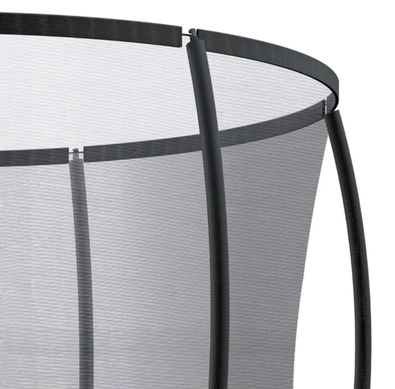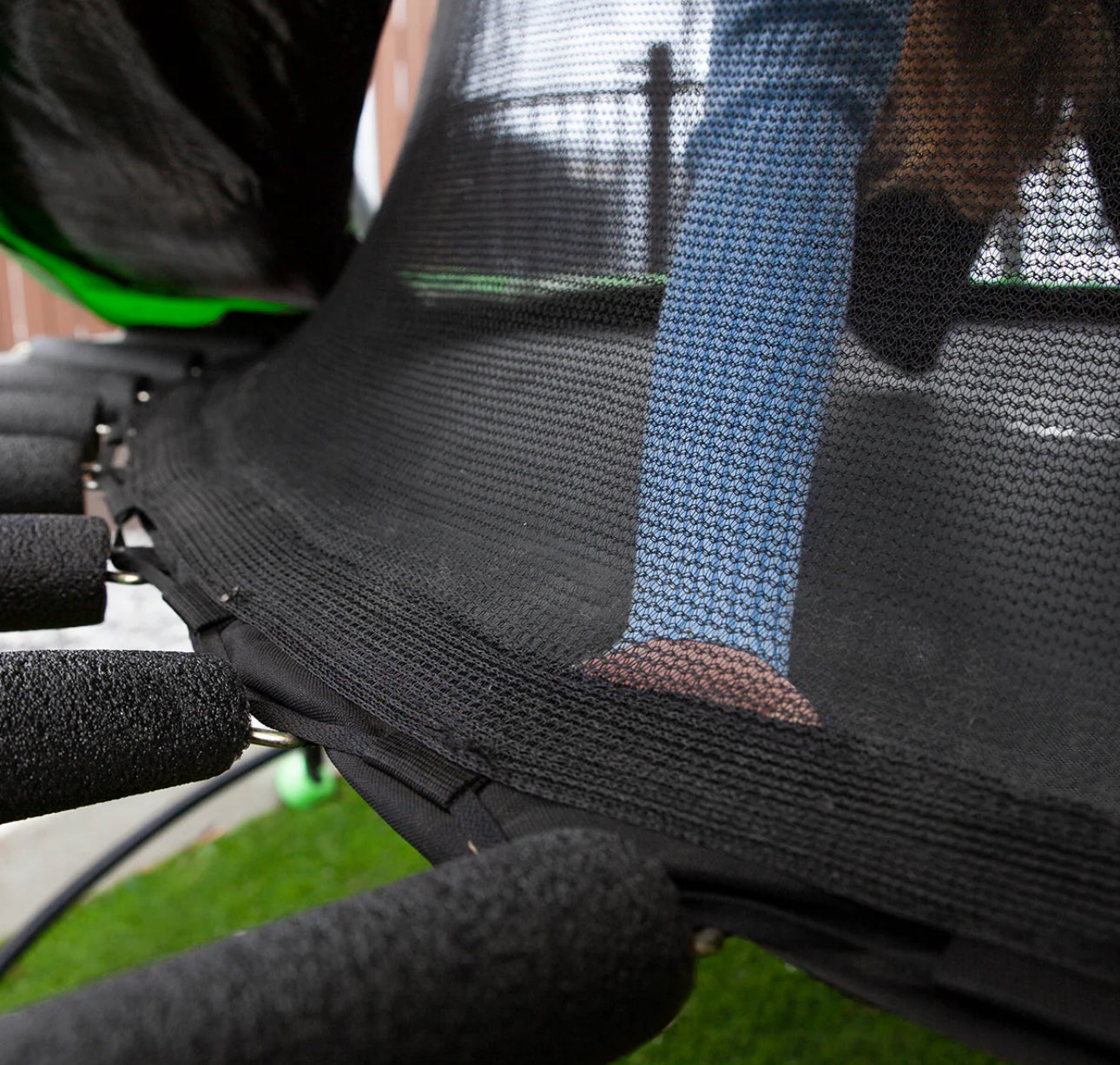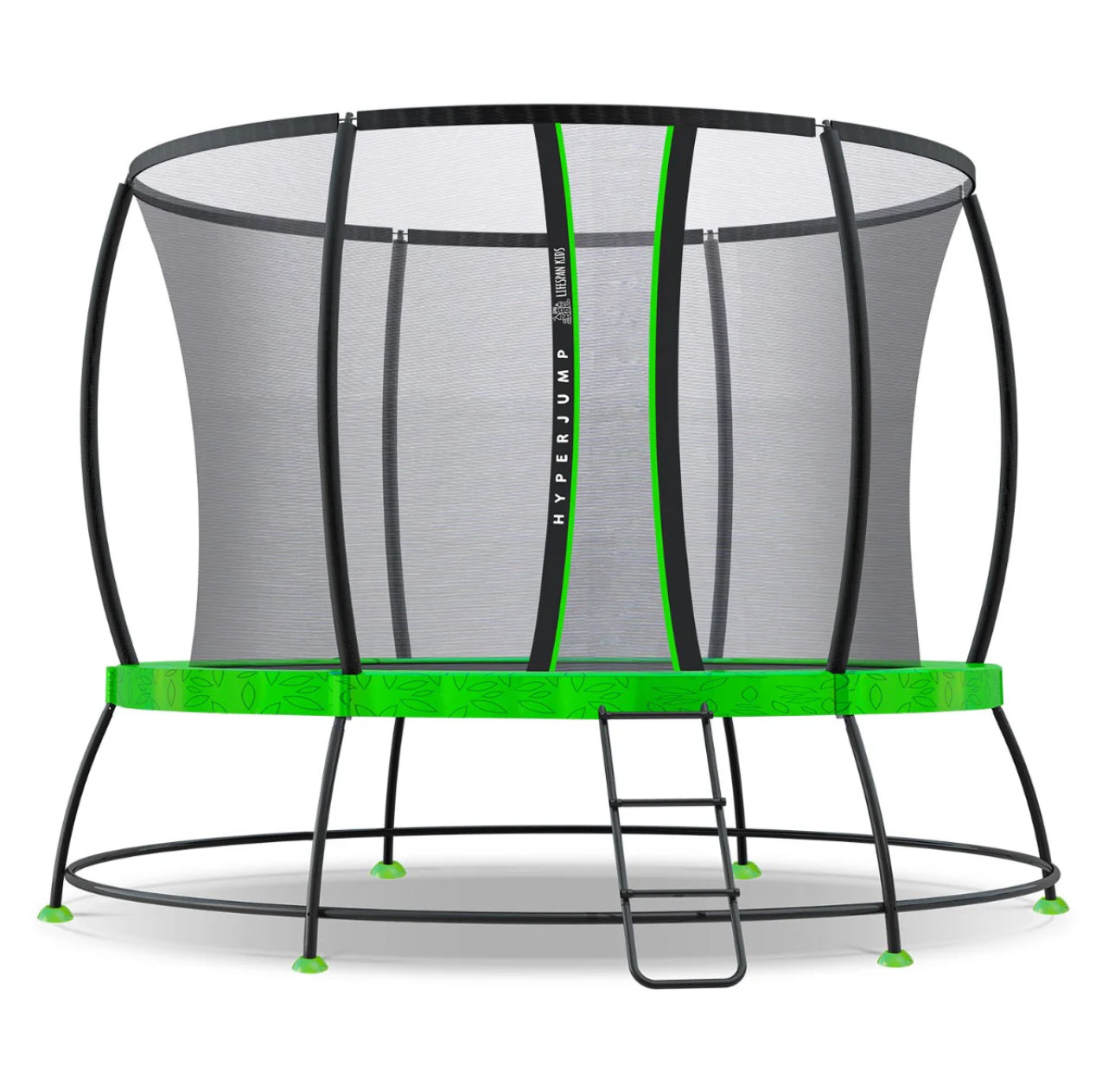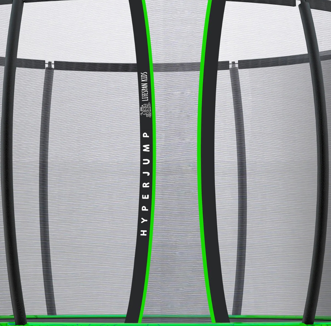 Bounce the day away on the 10ft HyperJump 4 Spring Trampoline. The new series HyperJump 4 offers all the big bounce benefits of a spring trampoline with increased protection from metal components. Little ones can jump, twist and flip carefree on the HyperJump 4 with the support of the reinforced safety netting and foam-covered metal springs to protect small wandering hands. Our curved poles allow kids to safely fall on the net with the smart zipless entry making it easier to enter and exit the trampoline.