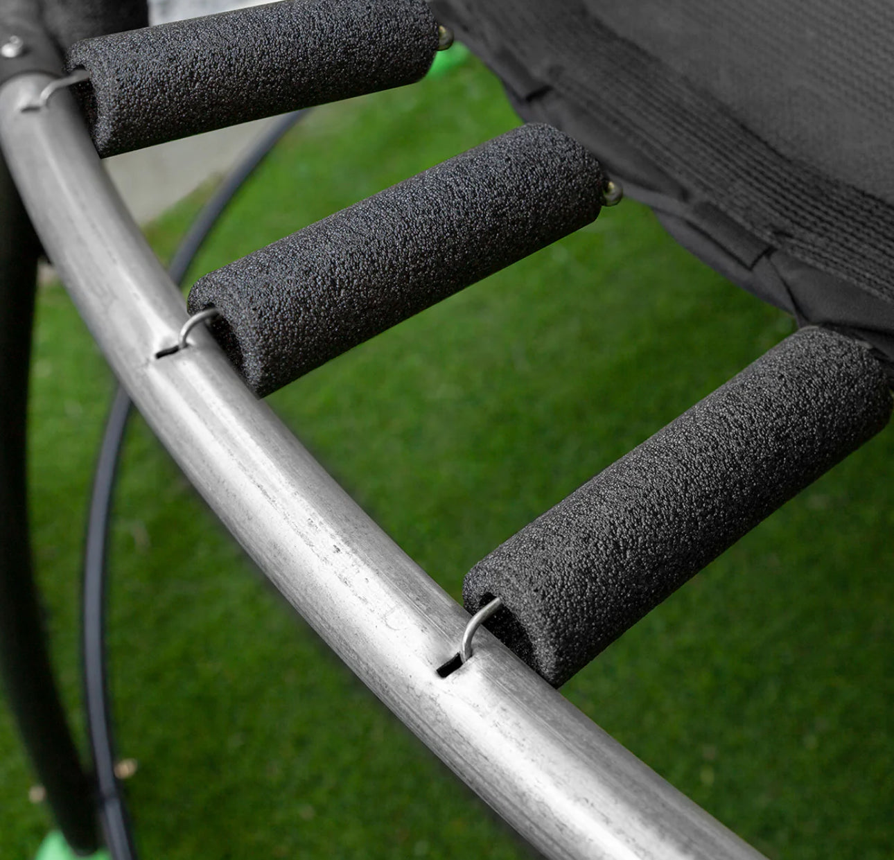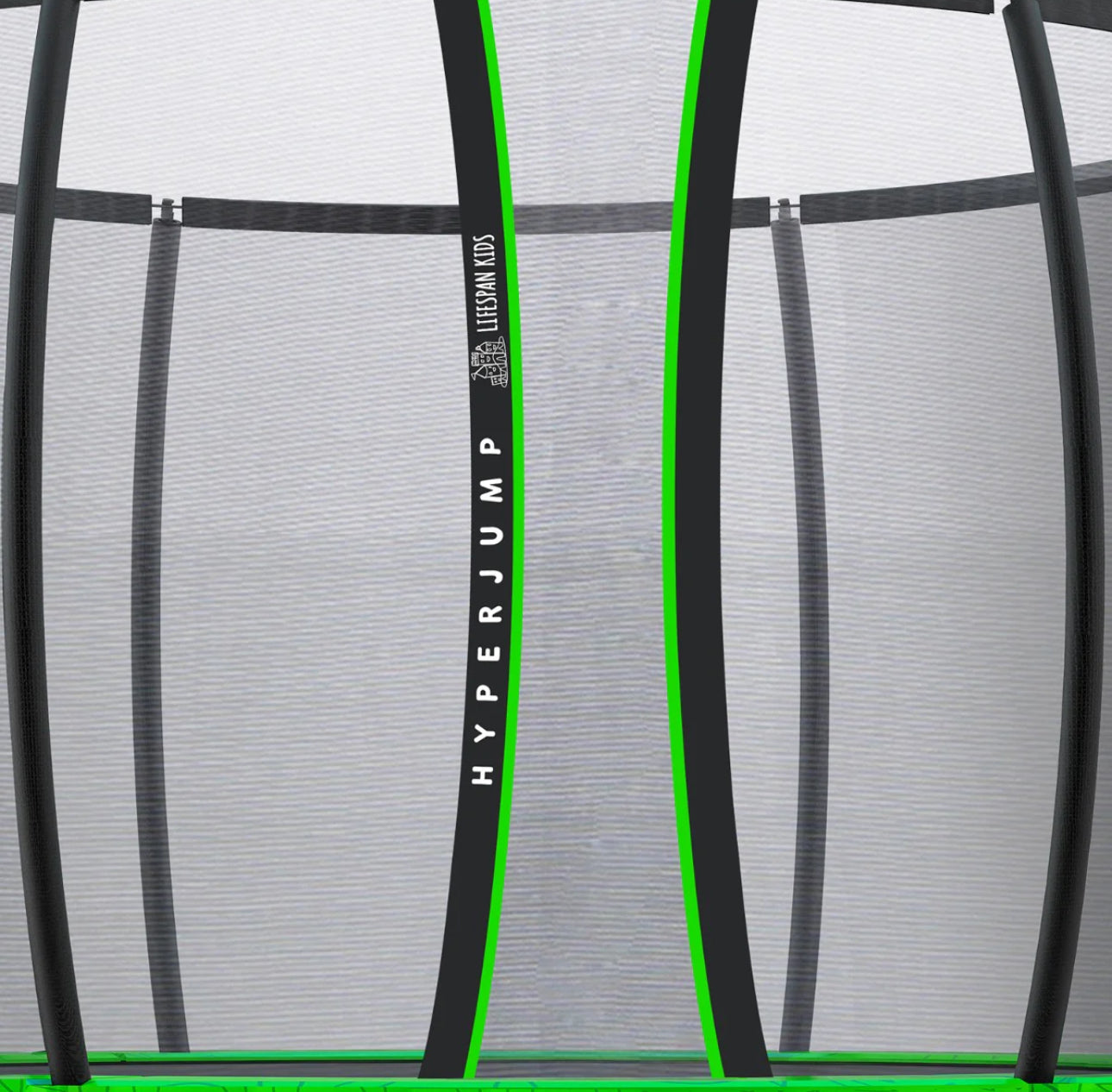 Bounce the day away on the 12ft HyperJump 4 Spring Trampoline. The new series HyperJump 4 offers all the big bounce benefits of a spring trampoline with increased protection from metal components. Little ones can jump, twist and flip carefree on the HyperJump 4 with the support of the reinforced safety netting and foam-covered metal springs to protect small wandering hands. Our curved poles allow kids to safely fall on the net with the smart zipless entry making it easier to enter and exit the trampoline.