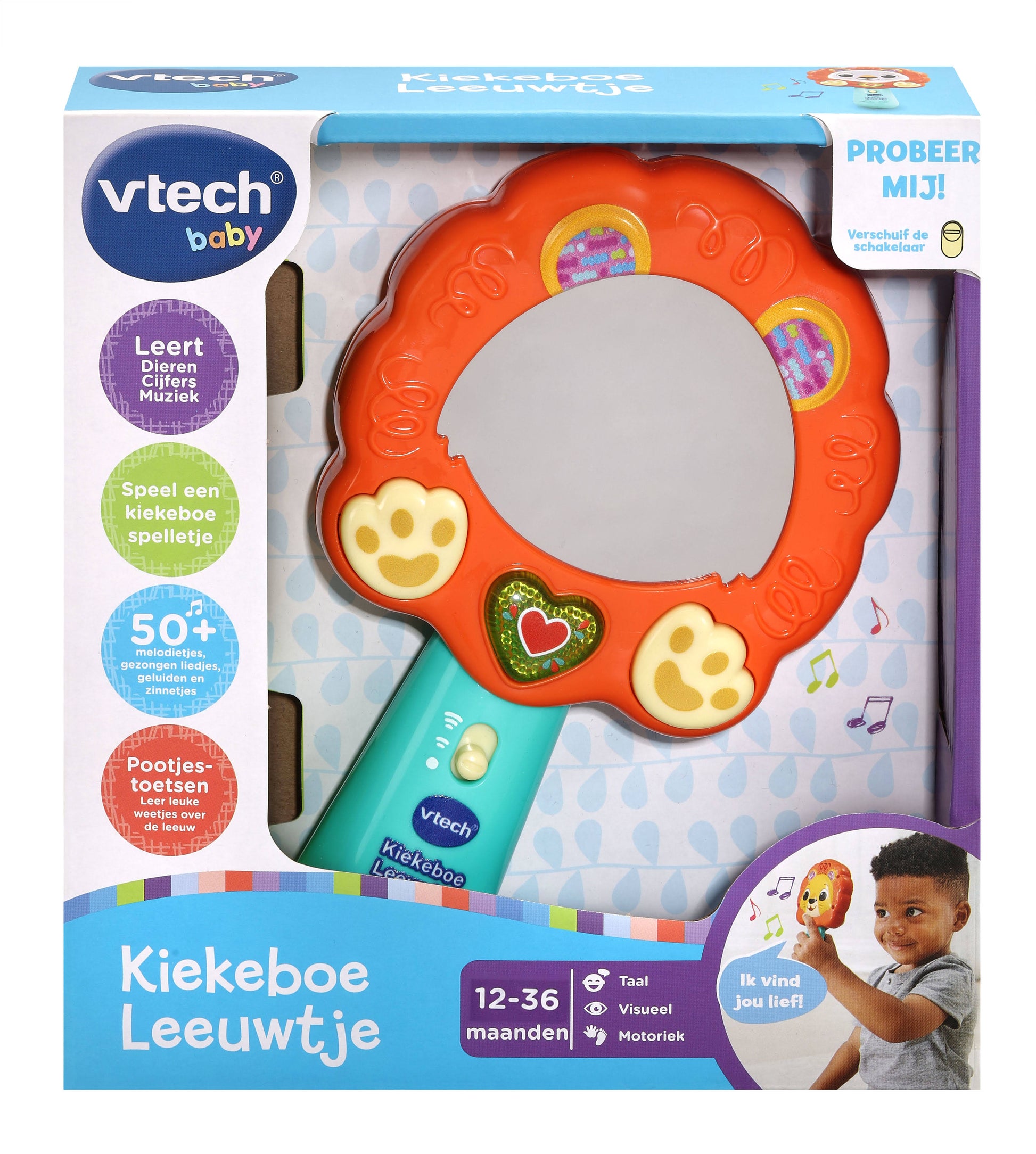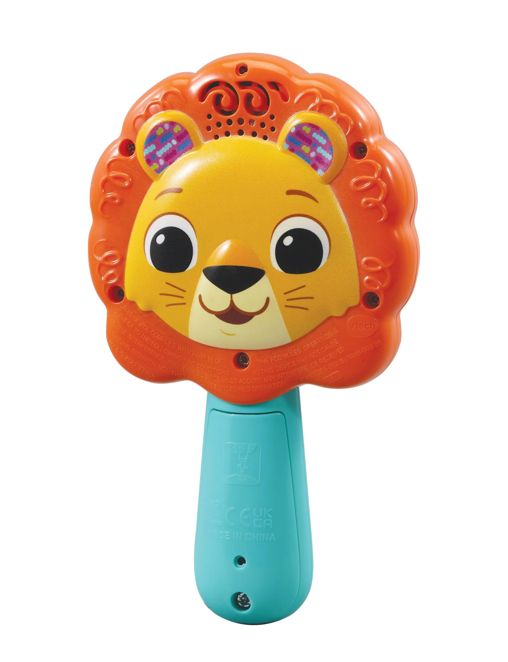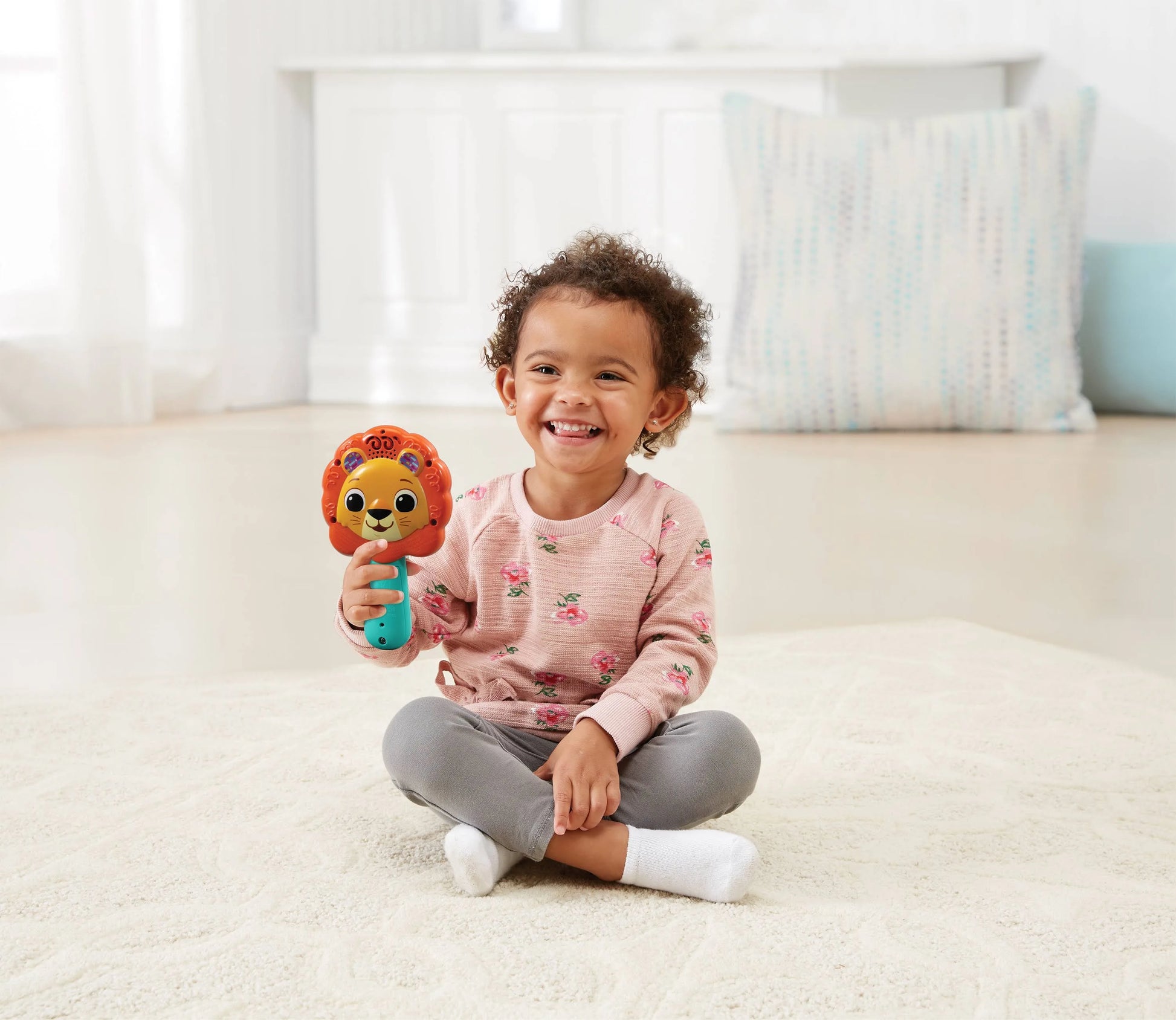 Gaze at your glorious self in the I See Me Lion Mirror! Have a giggle when the lion makes a surprise appearance in the mirror. Peek-a-boo! Help build self-awareness and positive feelings with this interactive mirror. The light-up heart plays loving and encouraging phrases while giving little ones a chance to develop fine motor skills with button-pressing. Press the lion's paws to hear about parts of the body and to play four sing-along songs and ten melodies.
