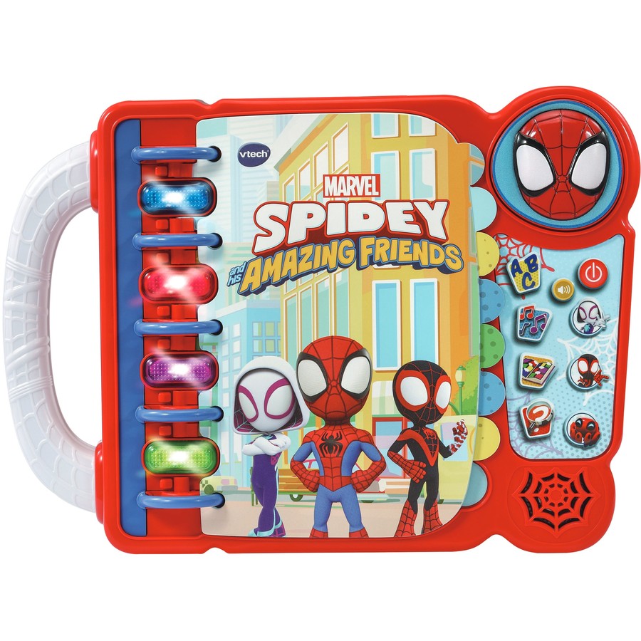 Read and explore with the Spidey Learning Book! Save the city with the Spidey team! Listen to Spidey team adventure stories as you learn about letters and words. Press the light-up buttons to join in with Spidey's search operation, or jam drum sounds into music like Gwen. Spidey's voice introduces the team and encourages you throughout the journey! The 14 colourful pages encourage reading and cognitive development.