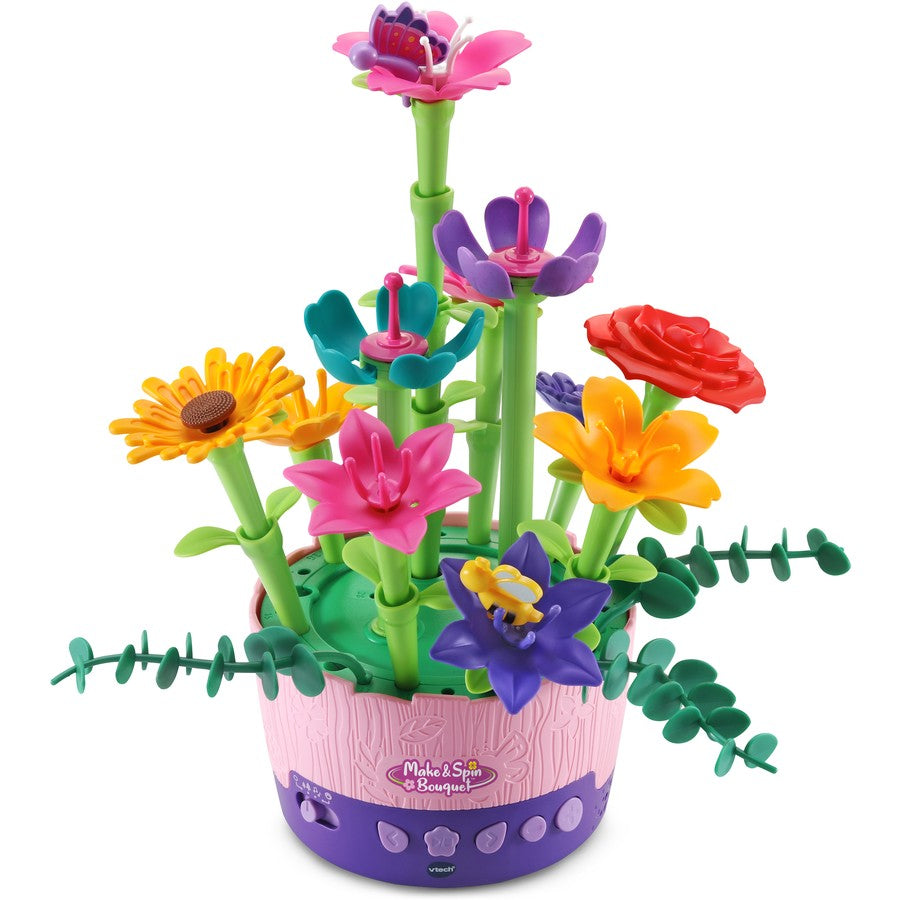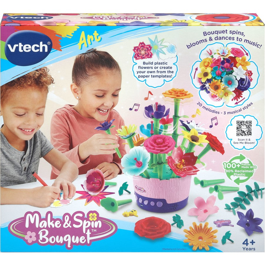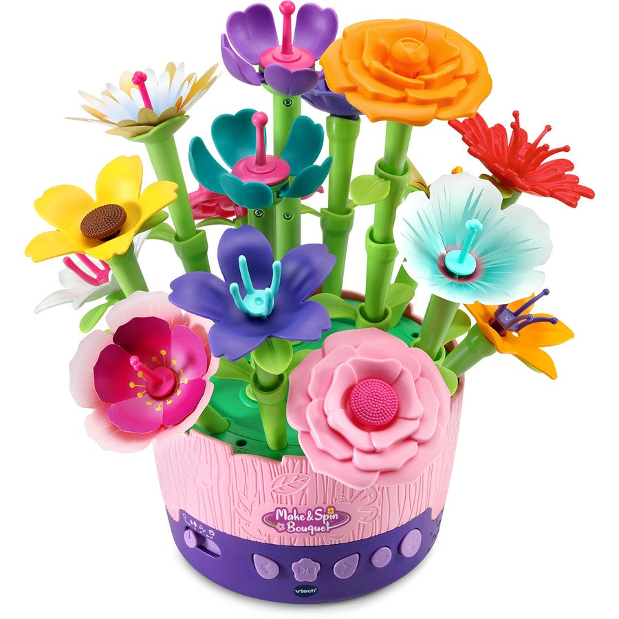 Creativity is in bloom with the Make & Spin Bouquet! With over 100 pieces made from 90% reclaimed plastic, budding florists will be able to create tons of different combinations. Build different flowers with a variety of stems, flowers, stamen and foliage, then choose where to place them in the pot. Fly the bee and butterfly over the creation and perch them on the petals to rest! Use the included flower templates to colour in more petals and add your own unique twist. Once the bouquet is completed add some music, then watch as the flowerful creation spins and blooms in time to the rhythm. With this set that can be created again and again, spring is always in season!
