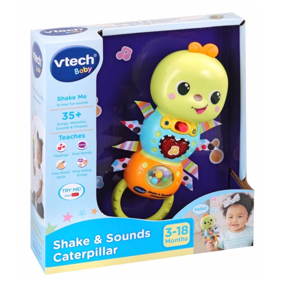 Shake, shake, shake this adorable little caterpillar rattle by VTech! The easy-to-grasp handle makes it simple for your little one to grip and shake the rattle. With a built-in motion sensor, the caterpillar will say fun phrases and play delightful sing-along songs, melodies and sounds. Shaking the caterpillar rattle will also make the colourful beads inside bounce around, capturing little one's attention. The caterpillar features a light up heart button that also plays fun phrases, songs, melodies and sounds.