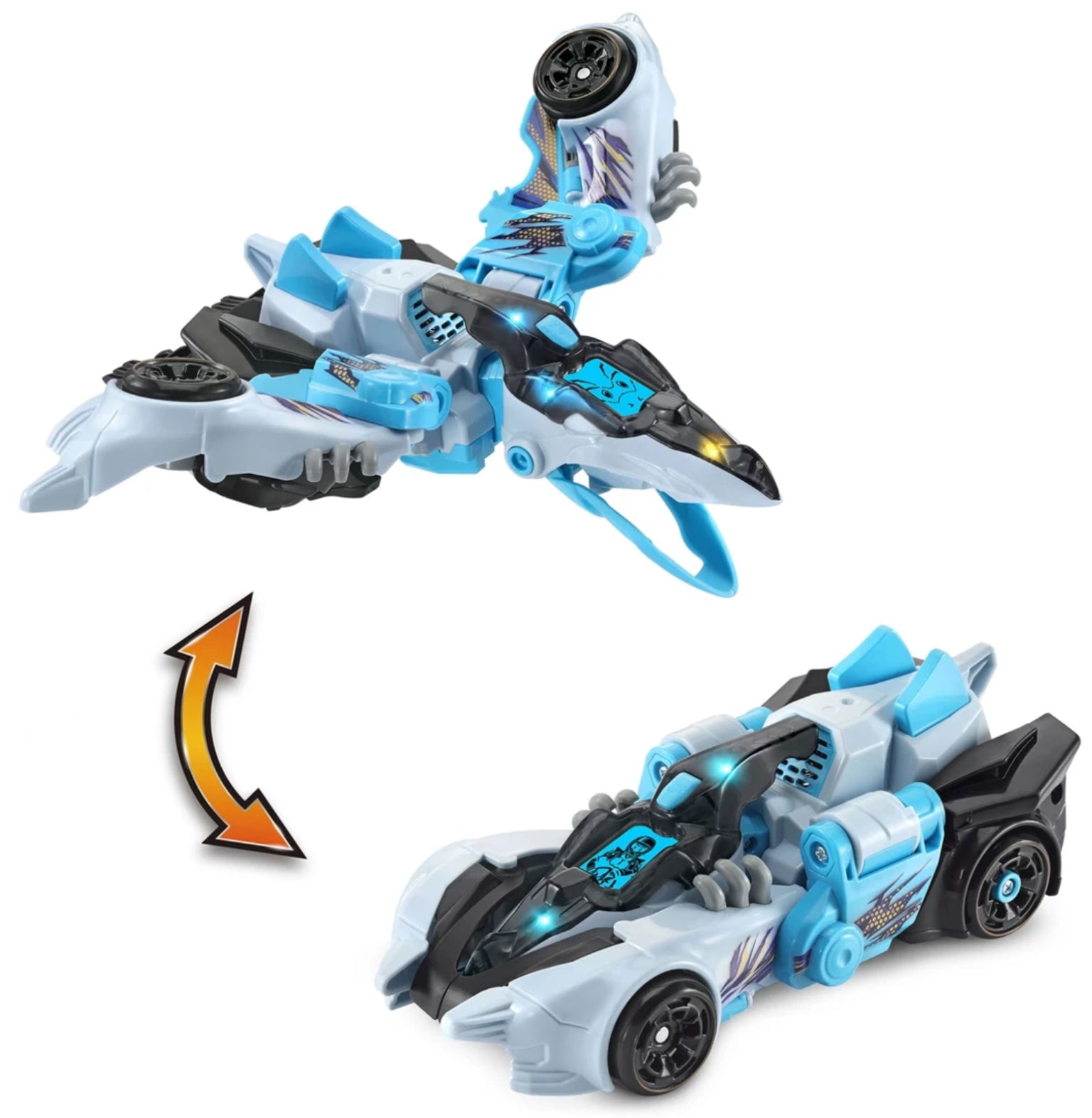 Take flight into a fast and fierce world with the drag-racing Switch & Go Dinos Tal0n the Pterodactyl. Transform this agile, fire-breathing reptile into a daring dragster with realistic sound effects and driver animations in a few simple steps. Go faster? Challenge accepted! Transform into an agile reptile and get ready to hit the skies with wing-flapping action and animated eyes.