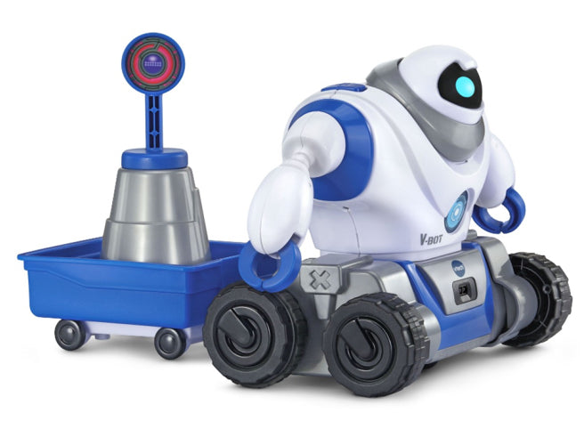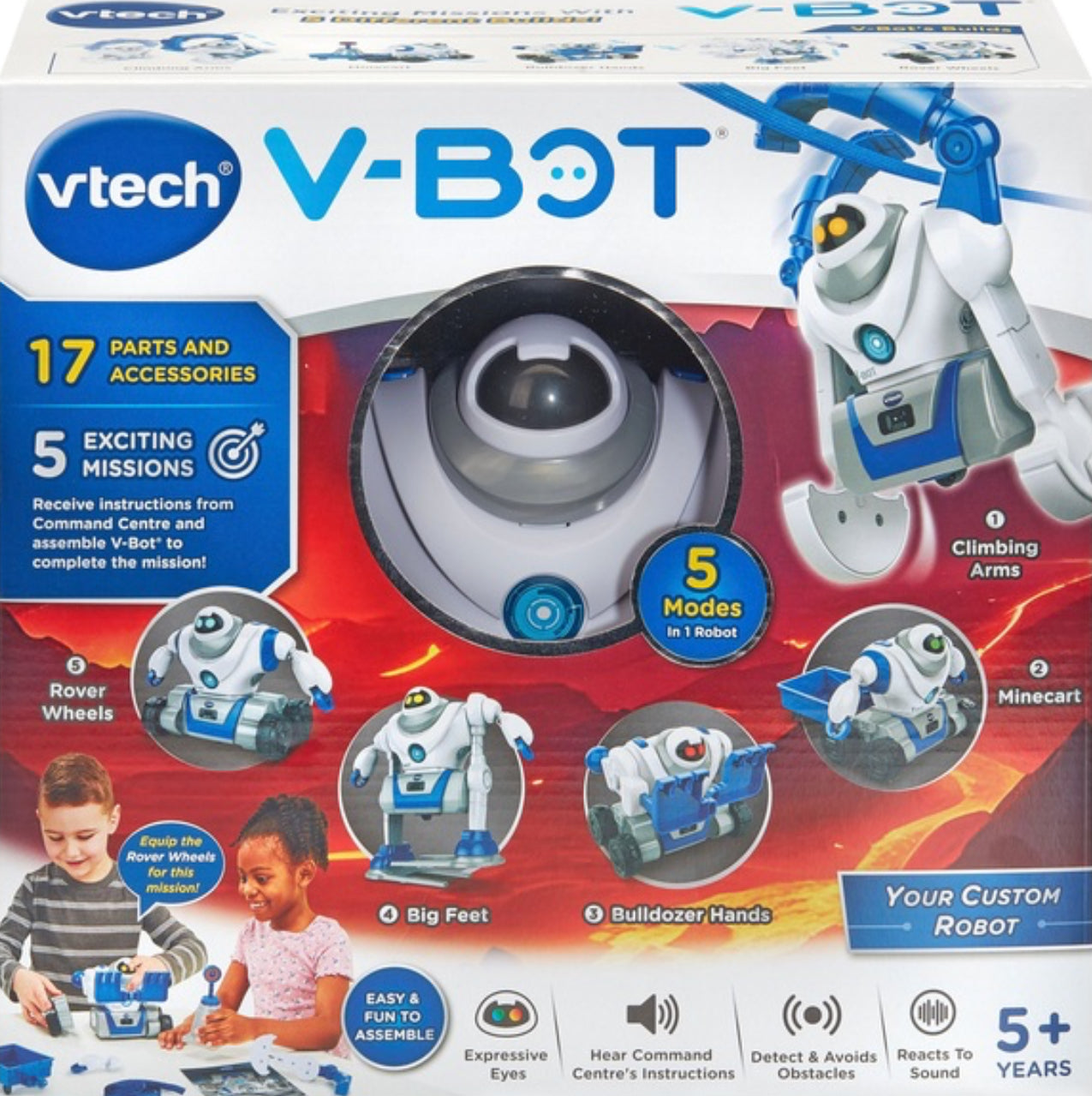 Meet the VTech V-Bot, your friendly motorised 5-in-1 robo pal, who responds with beeps and boops! V-Bot comes with 17 parts with 5 possible configurations. Assemble V-Bot together and watch how he moves. V-Bot can reverse directions, avoid obstacles and respond to claps.