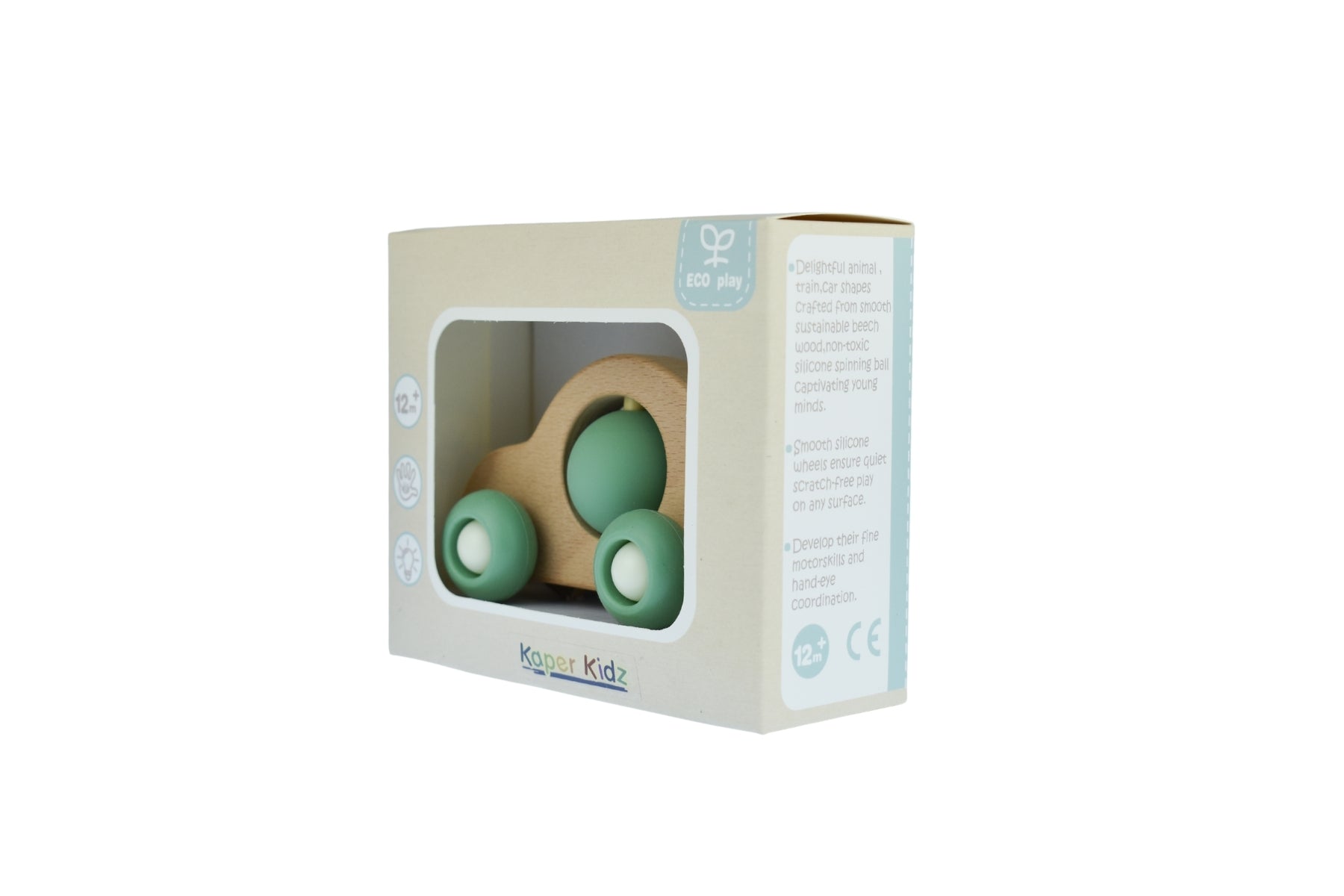 Introducing the Kaper Kidz EcoSpin Car, where eco conscious design meets playful learning in a delightful package. Crafted from sturdy beech wood and adorned with vibrant, flexible silicone accents, this toy car offers a hands on, engaging play experience for little ones.