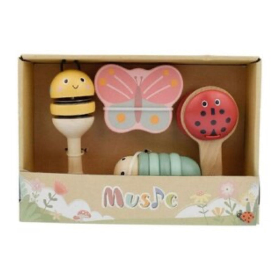 WOODEN SPRING INSECT MUSIC SET 4PC