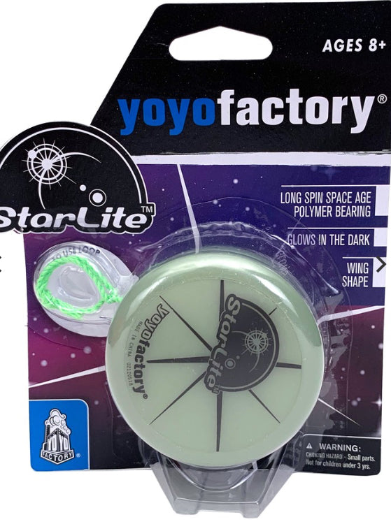 Yoyofactory Spinstar yo-yos are equipped with a special starburst bearing so they spin at the end of the line after dropping and then return to your hand with a jerk.